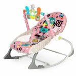 Este echipat cu un panou multimedia cu functii de vibratie si sunet, care ajuta la calmarea si relaxarea copilului. In plus, balansoarul contine o bara cu 3 jucarii colorate care stimuleaza dezvoltarea motorie a copilului.