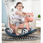 Balansoar 3 in 1 Nichiduta Garden Lovely Unicorn Pink transformabil in vehicul fara pedale cu maner parental, roti EVA, centuri de siguranta, jucarie muzicala, spatar si bara de siguranta detasabile