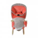 - Dispune de un scaun tip fotoliu cu spatar si laterale inalte, tapitat cu plus moale portocaliu-coral la interior, asigurand o sedere extrem de confortabila si de sustinut pentru cel mic.