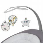 Pentru a distra bebelusul, balansoarul are o bara de jucarie reglabila si pana la 12 melodii presalvate si 2 sunete ale naturii.
