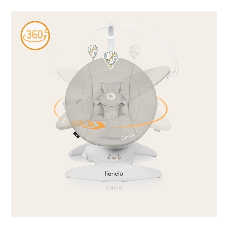 Balansoar Lionelo Iris Bej 2 in 1, Rotire 360 grade, Electric, Cu 3 moduri de leganare, Cu 5 trepte de viteza, Cu 3 pozitii de inclinare, Pana la 9 kg