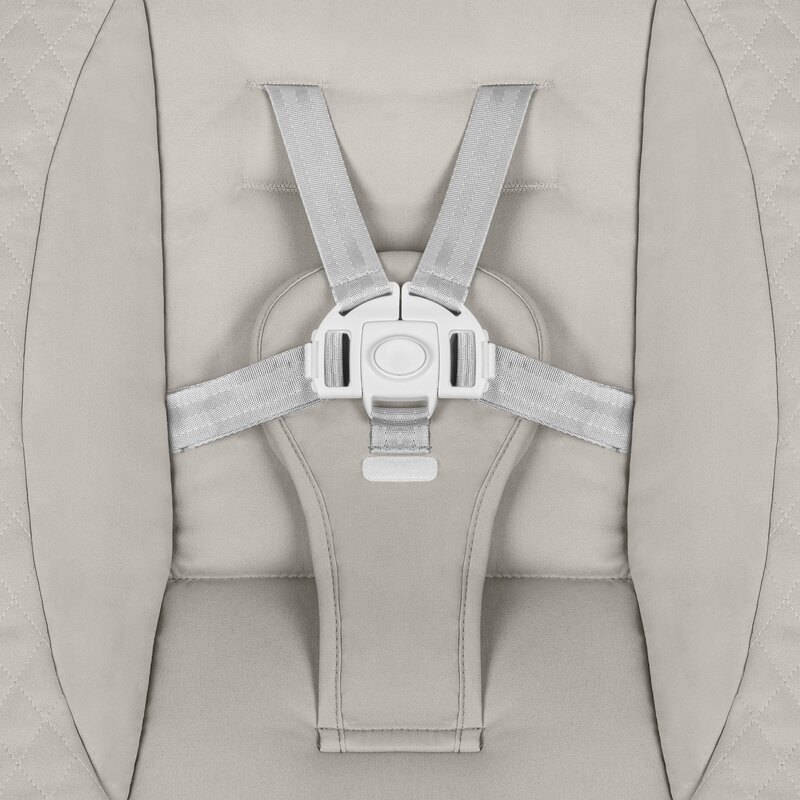 Scaunul larg bine conturat ofera nu numai confort, ci si faciliteaza plasarea copilului in leagan in cea mai sanatoasa pozitie posibila. Centura in 5 puncte cu protectie asigura siguranta bebelusului.