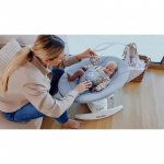 Scaunul rotativ inovator cu 360 de grade nu numai ca permite reglarea directiei de leganare, ci si ajuta la mentinerea contactului vizual constant cu bebelusul.