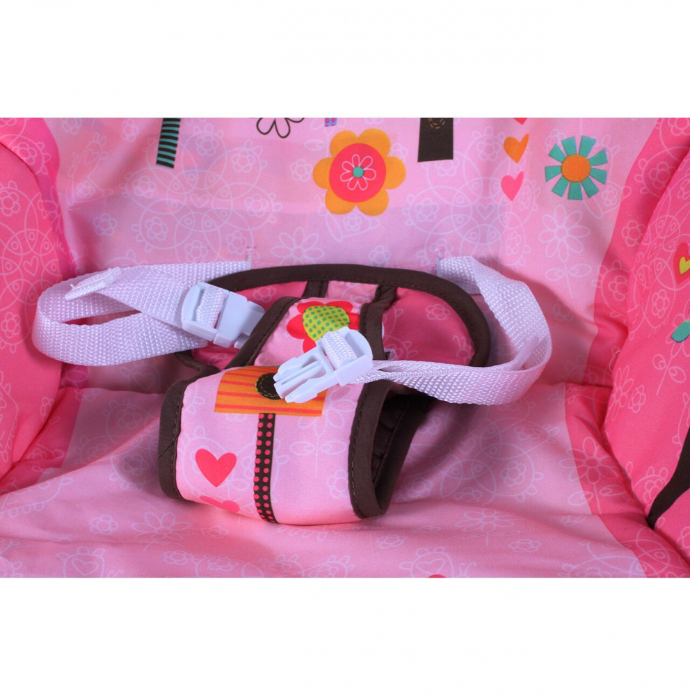 Balansoar multifunctional cu Muzica, Vibratii, bara detasabila cu 3 jucarii suspendate, Scaunel rabatabil in 2 pozitii, Husa detasabila, Pink