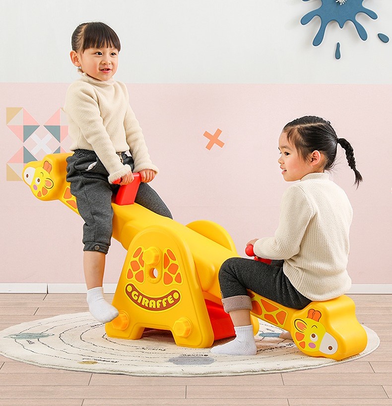 Acest balansoar in tema Giraffe, este mai mult decat o simpla jucarie; este o invitatie la joaca activa si la crearea de amintiri frumoase!