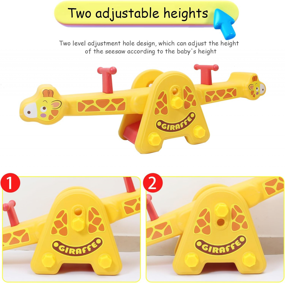Balansoar pentru copii Nichiduta Garden Giraffe, cu doua locuri si manere de sustinere, reglabil pe inaltime, greutate maxima admisa 100 kg, dimensiune 116 x 33 x 39 cm