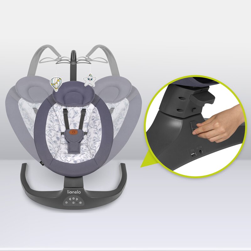 Balansoarul Lionelo Ralf are o optiune de balansare cu 5 niveluri diferite de viteza.