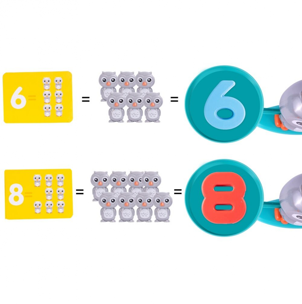 * Greutatea fiecărei cifre este aceeași cu numărul de bufnițe reprezentate de acea cifră. Datorită acestui fapt, copilul poate învăța rapid și ușor să numere.