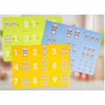 * Setul include cărți de joc în trei culori care înfățișează numere, animale și diverse operații matematice simple, datorită cărora copilul mic va putea face primii pași în adăugarea și recunoașterea numerelor.