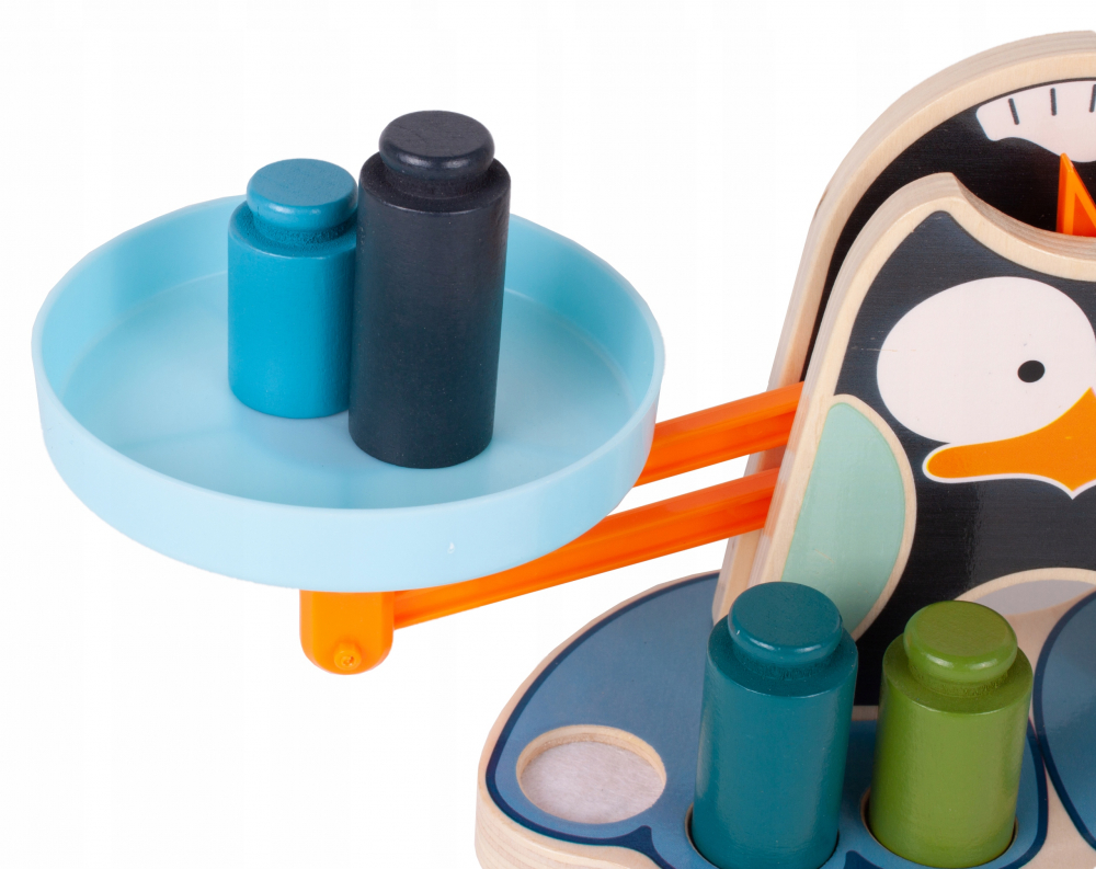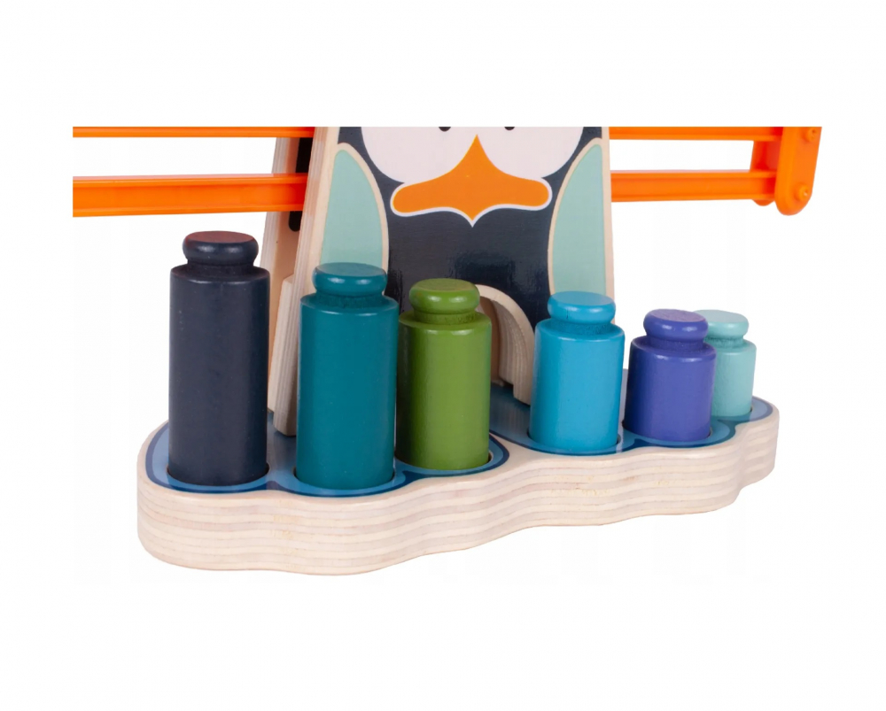 * Solzi de pinguini din lemn, colorați, pentru copii. Îi va ajuta pe copii să înțeleagă ce este echilibrul, că obiectele au greutăți diferite, unele sunt mai grele și altele sunt mai ușoare.
