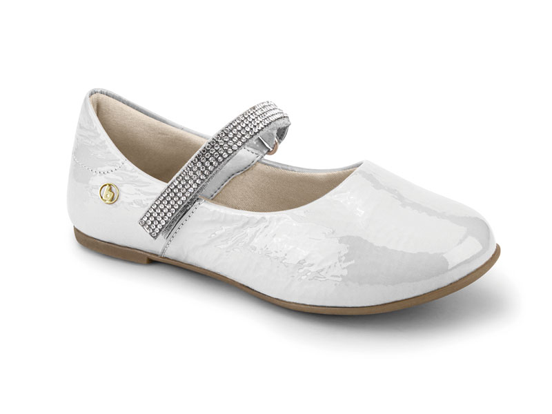 Design clasic si modern din piele lacuita, cu captuseala pe spate ce ofera confort si inchidere cu velcro impodobita cu strasuri, facand modelul super delicat si cu multa stralucire.