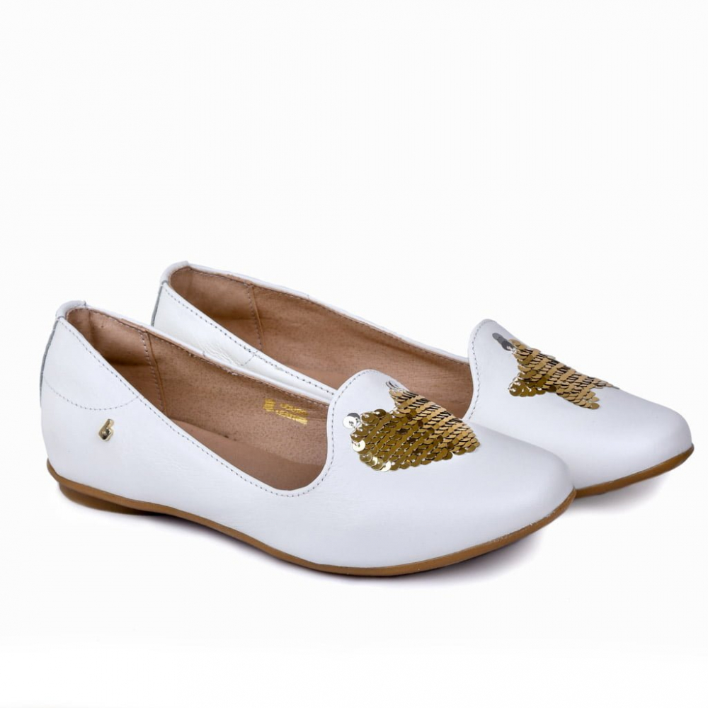 Pantofi albi cu detaliu inimioara care isi schimba culoarea, potriviti tuturor ocaziilor.