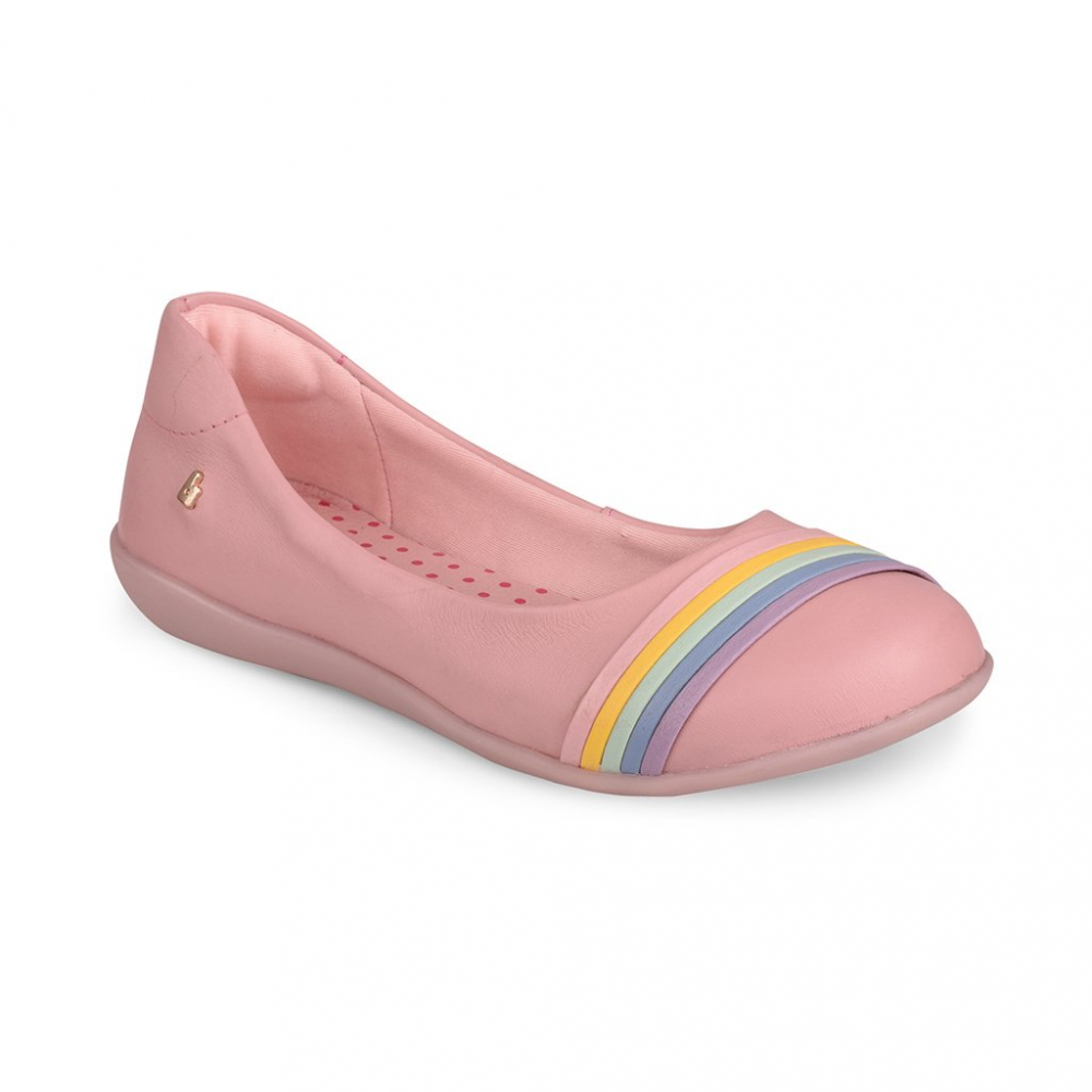 Pantofi roz pentru fetite cu detaliu curcubeu. Fabricati din piele moale și căptușeală textilă, au o forma rotunjita oferind mai mult confort.