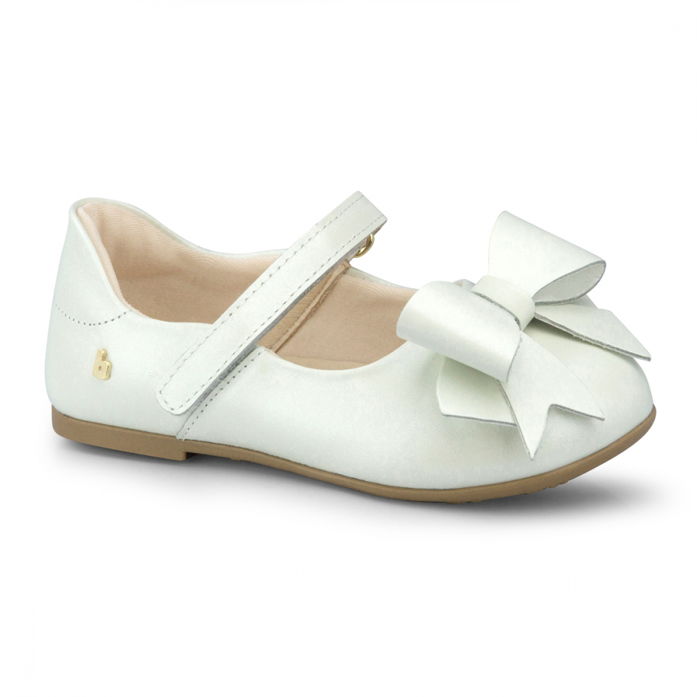 Pantofi albi pentru fetite, cu inchidere cu velcro pe picior. Fabricati din piele moale, au o forma rotunjita oferind mai mult confort.
