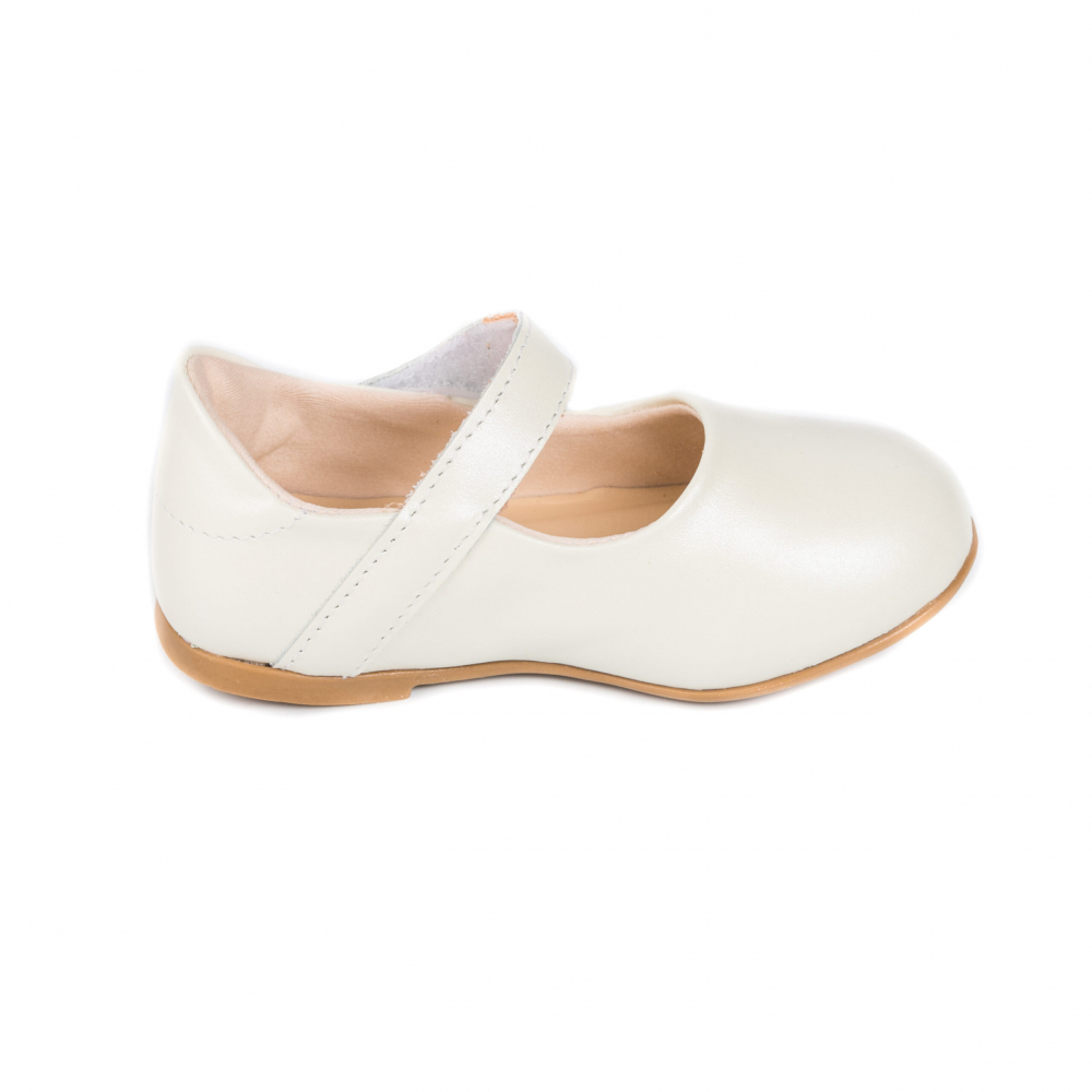 Balerini albi din piele cu inchidere cu velcro, pentru o incaltare usoara. Brantul din piele cu tehnologia Fisioflex absoarbe umezeala si distribuie presiunea, conferind senzatia de mers descult.