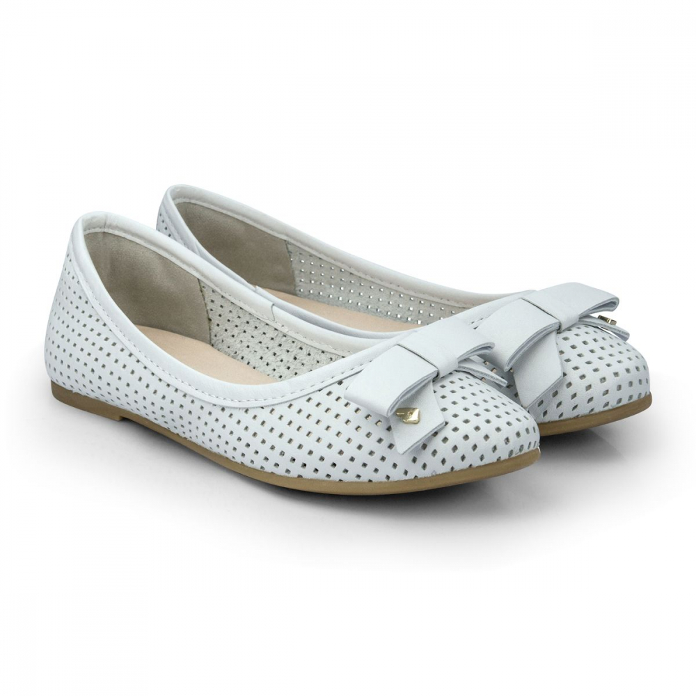 Pantofi albi, fabricati din piele moale, perforata. Prevazuti cu brant din piele Fisioflex, cu sistem de absorbtie si distributie a umezelii si a presiunii, pentru un plus de confort.