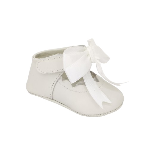 Balerini pentru fetite, potriviti pentru botez, pentru invatat mersul, confectionati integral din piele naturala (inclusiv talpa), se fixeaza pe glezna cu bareta cu scai, decor fundita din tul, sunt prevazuti cu sustinator plantar (talonet anti-platfus).