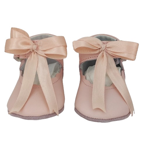 Balerini pentru fetite, potriviti pentru botez, pentru invatat mersul, confectionati integral din piele naturala (inclusiv talpa), se fixeaza pe glezna cu bareta cu scai, decor fundita din tul, sunt prevazuti cu sustinator plantar (talonet anti-platfus).