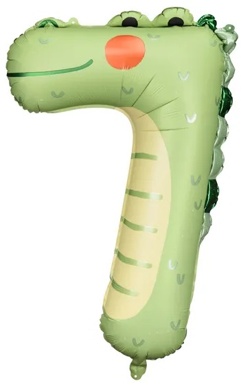 * Acest balon deosebit, in forma de numarul 7 si decorat cu un simpatic Crocodil, este alegerea perfecta pentru a marca primul an al unui mic explorator!