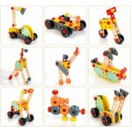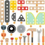 Echipat cu o masa cu scule si 76 de accesorii diferite, cum ar fi un ciocan, o surubelnita sau chei, va permite sa dezvoltati abilitatile manuale si imaginatia.
