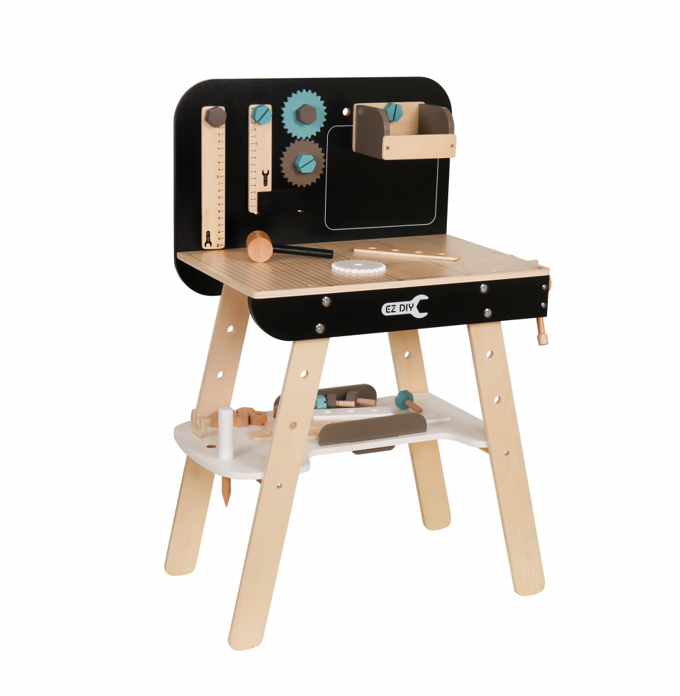 Bancul de lucru poate fi cadoul ideal pentru orice baietel cu varsta de peste 3 ani, care va adora cu siguranta toate uneltele din acest set, deoarece sunt asemanatoare cu cele reale, astfel incat cei mici sa se simta ca niste mesteri adevarati. O astfel de masa permite desfasurarea si altor tipuri de activitati, cum ar fi aranjarea blocurilor si a puzzle-urilor.