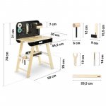 Banc de lucru pentru copii, 8 unelte, raft depozitare, 74x50 cm, lemn