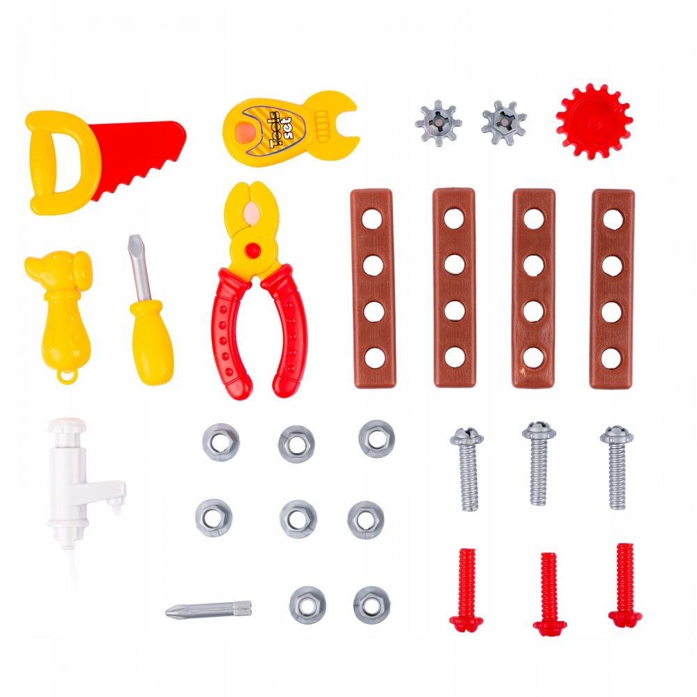 * Cu acest set copiii isi vor imagina ca repara orice la bancul de lucru;