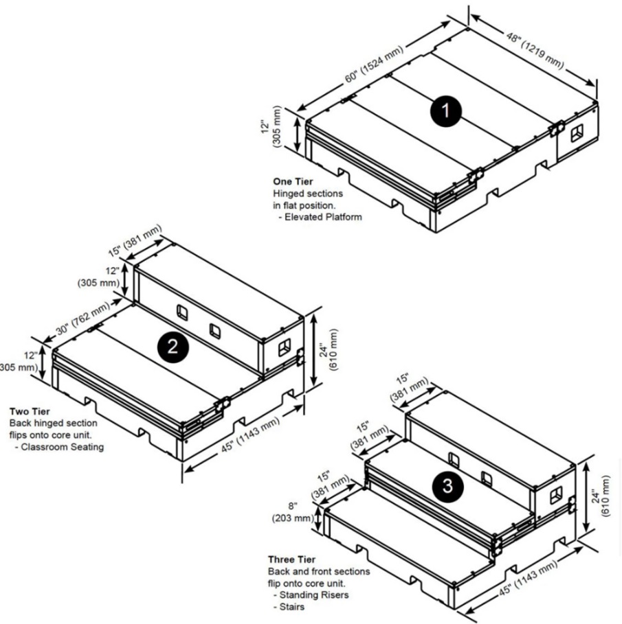 Un produs extrem de inovativ ce poate fi folosit in doua moduri: ca scena sau treapta inaltatoare. De asemeni, cand nu este utilizata, poate fi folosita ca spatiu de depozitare.