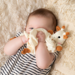 Usor si special conceput pentru manutele mici ale bebelusului, datorita capului girafei si nodurilor ce se gasesc la fiecare extremitate.