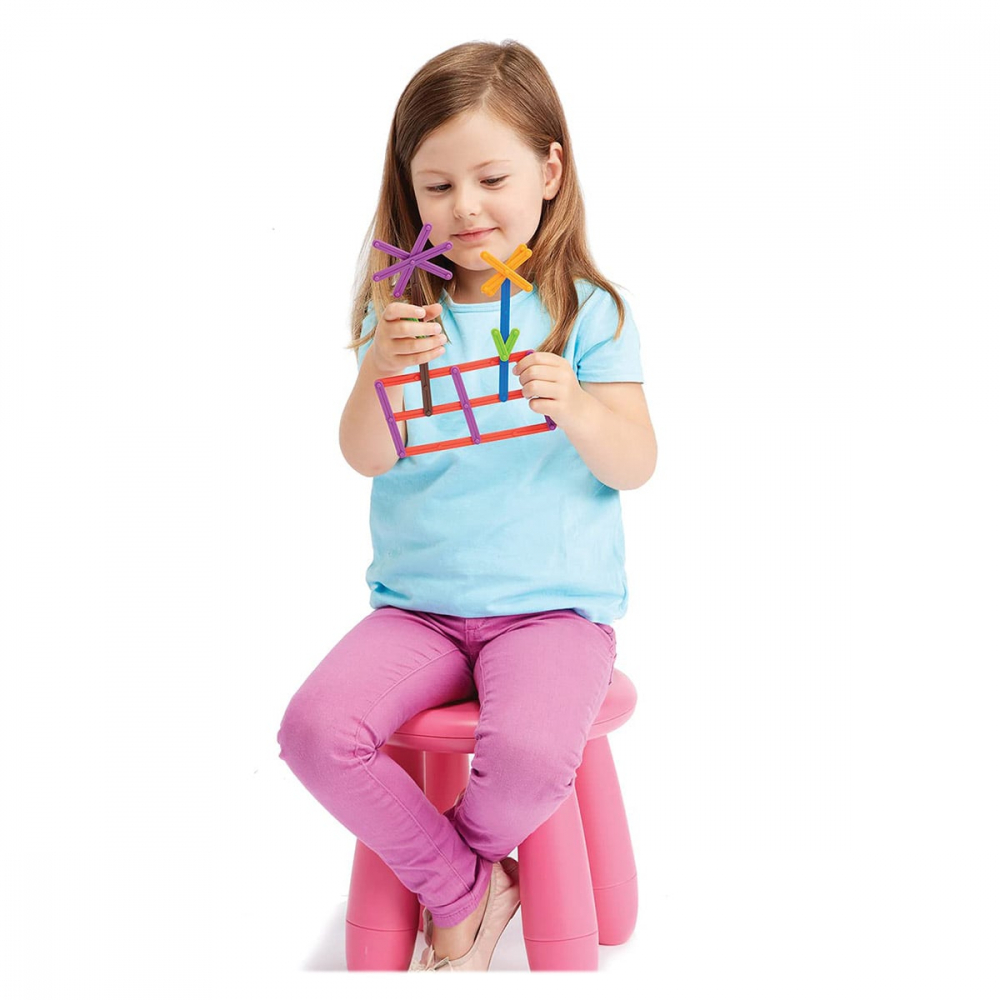 • Bastonasele sunt prevazute cu puncte de conectare multiple, astfel incat copiii sa poata crea o varietate de forme, inclusiv triunghiuri, patrate, poligoane si multe altele.