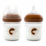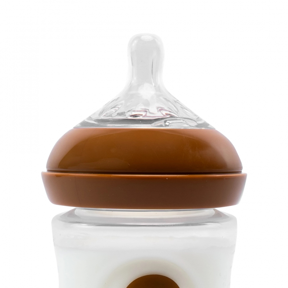 Biberon anti-colici nivel de debit scazut 1, Kidnort Blabaer Brown, din PU durabil si rezistent, capacitate 125 ml, 0-3 luni