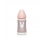 Biberon cu tetina rotunda din silicon cu 3 fluxuri iepuras cu linii roz Hygge Suavinex 270 ml
