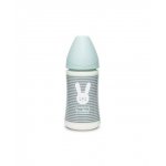 Biberon cu tetina rotunda din silicon cu 3 fluxuri iepuras cu linii verzi Hygge Suavinex 270 ml
