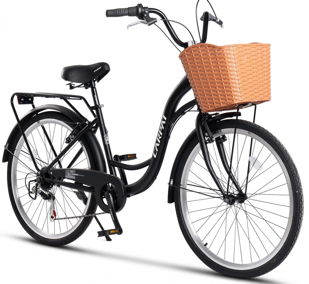Bicicleta City Carpat C26263A Negru/Alb, roti 26 inch, 7 viteze, inaltime utilizator 150-165 cm, greutate suportata 120 kg