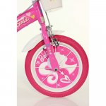 Bicicleta copii Dino Bikes Barbie 14 inch, varsta 4-7 ani si o inaltime cuprinsa intre 95-115 cm, frana de mana pe roata din fata/spate, roti ajutatoare detasabile, scaun pentru papusa in spate