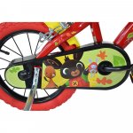 Bicicleta copii Dino Bikes Bing 14 inch, varsta 4-7 ani, inaltimea 95-115 cm, frana de mana pe roata fata/spate, pinion spate fix, roti ajutatoare detasabile, suport cu sticla de apa