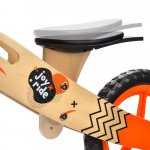 Bicicleta copii fara pedale din lemn Joy Ride Balance Orange 12 inch, scaun reglabil pe inaltime 34-38 cm, roti EVA, clopotel, gentuta accesorii, ghidon cu posibilitate de blocare