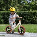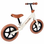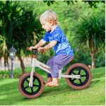 Bicicleta de echilibru fara pedale, cu Ghidonul si Saua ergonomica reglabile in inaltime, roti de 12 inch din spuma EVA si manere anti-alunecare White/Brown