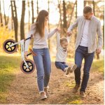 * Rotile bicicletei de echilibru sunt fara camera, din spuma EVA ceea ce le face nu numai exceptional de usoare si durabile, ele nu necesita pompare. In plus, materialul folosit pentru producerea lor este prietenos cu podeaua, ceea ce va permite sa utilizati bicicleta in siguranta chiar si acasa, fara teama de a zgaria podeaua.