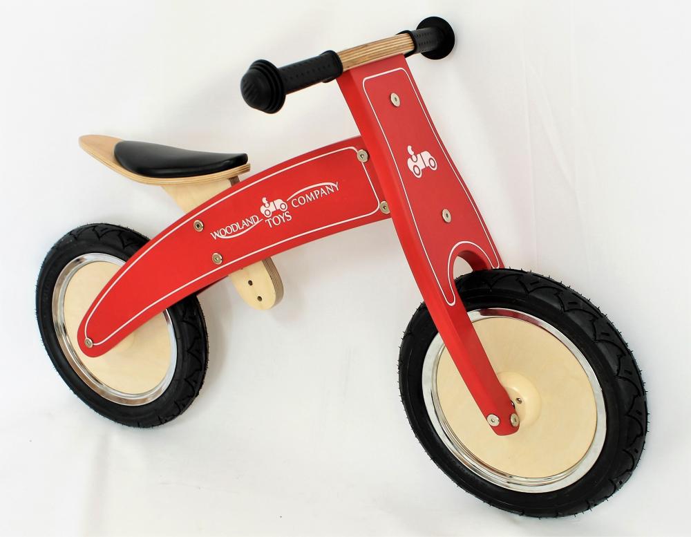 Bicicleta de lemn fara pedale Woodland Toys este o alegere excelenta pentru parintii care apreciaza atat potentialul distractiv, cat si aspectul retro, elegant si designul si culorile clasice. Woodland Toys este echipata cu roti gonflabile pentru un confort sporit pentru micii ciclisti.