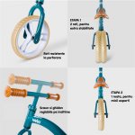 Acest design inovator ofera bicicletei mai multa stabilitate, ceea ce inseamna ca cei mici invata sa se echilibreze pe 2 roti mai rapid si independent.