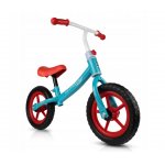 Bicicleta fara pedale cu roti de 12 inch din spuma EVA, cu scaun si ghidon reglabile in inaltime, Push Sport Bicolor, inaltime sezut 29-34 cm, de la 3 ani, inaltime recomandata 80-108 cm