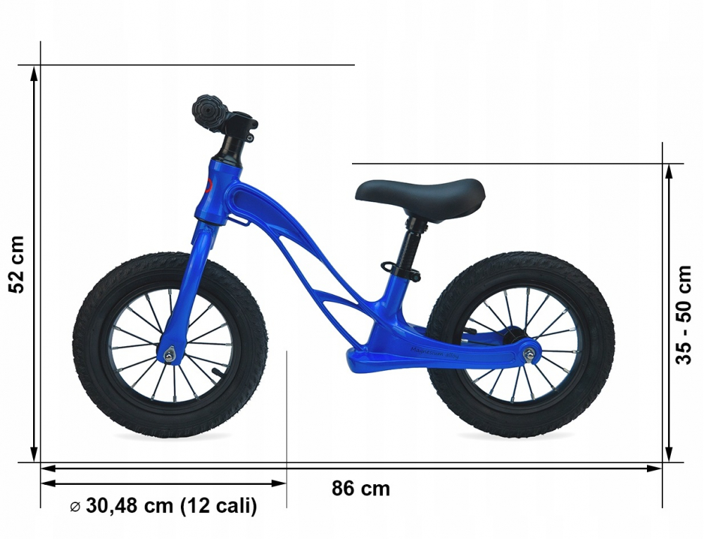 Bicicleta fara pedale pentru copii Maawo, roti de 12 inch, cu anvelope pneumatice, cadru din aliaj de magneziu, design ergonomic, Saua reglabila, sarcina maxima 30 kg, Blue Stilus