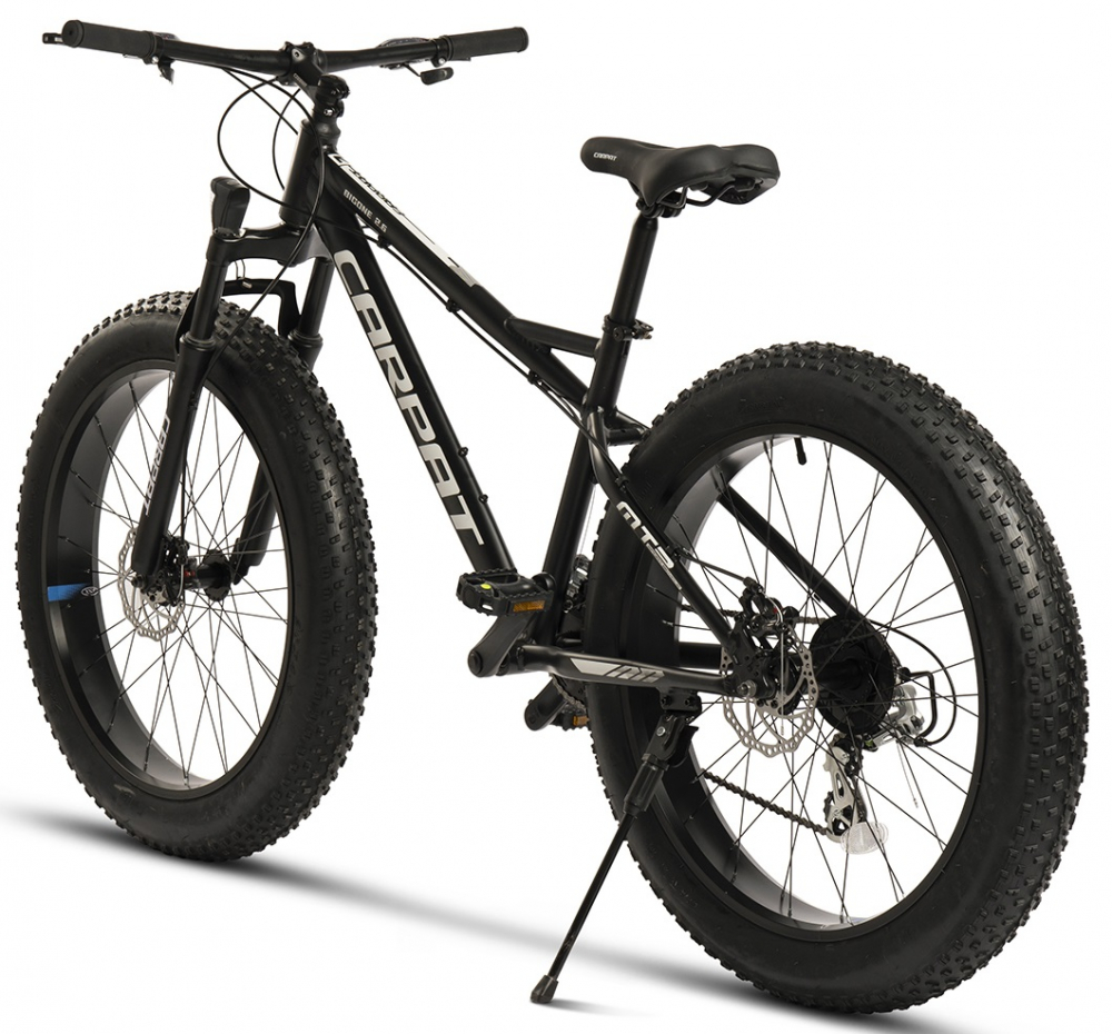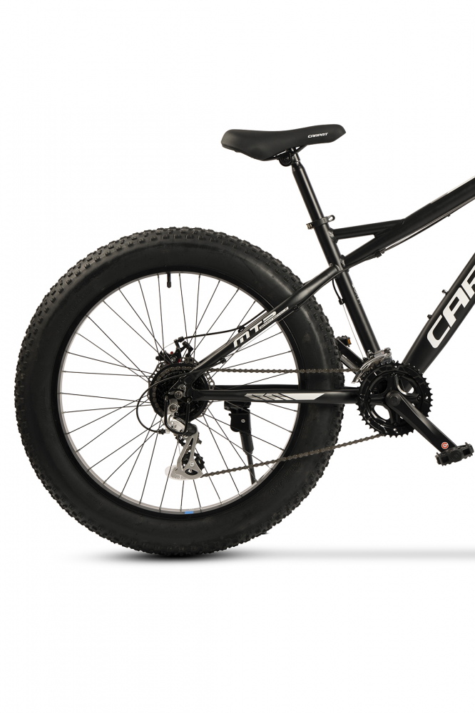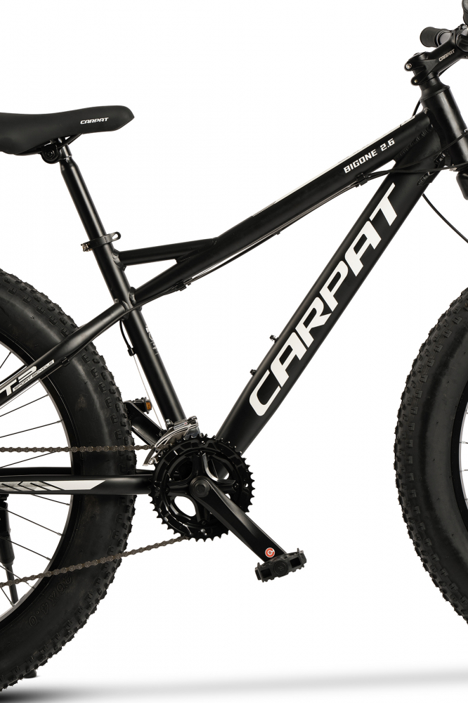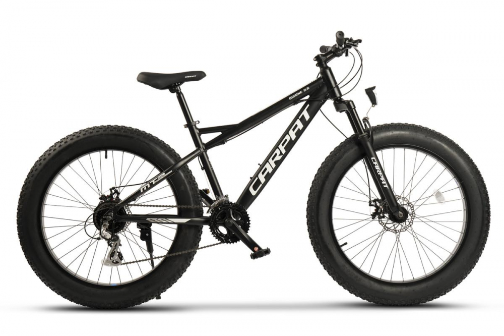 Bicicleta MTB-Fat Bike CARPAT Bigone C26278G Negru/Alb, Schimbator spate Shimano Altus, 16 Viteze, roti 26 inch, Frane Mecanice Disc, inaltime utilizator 150-195 cm, greutate suportata 120 Kg