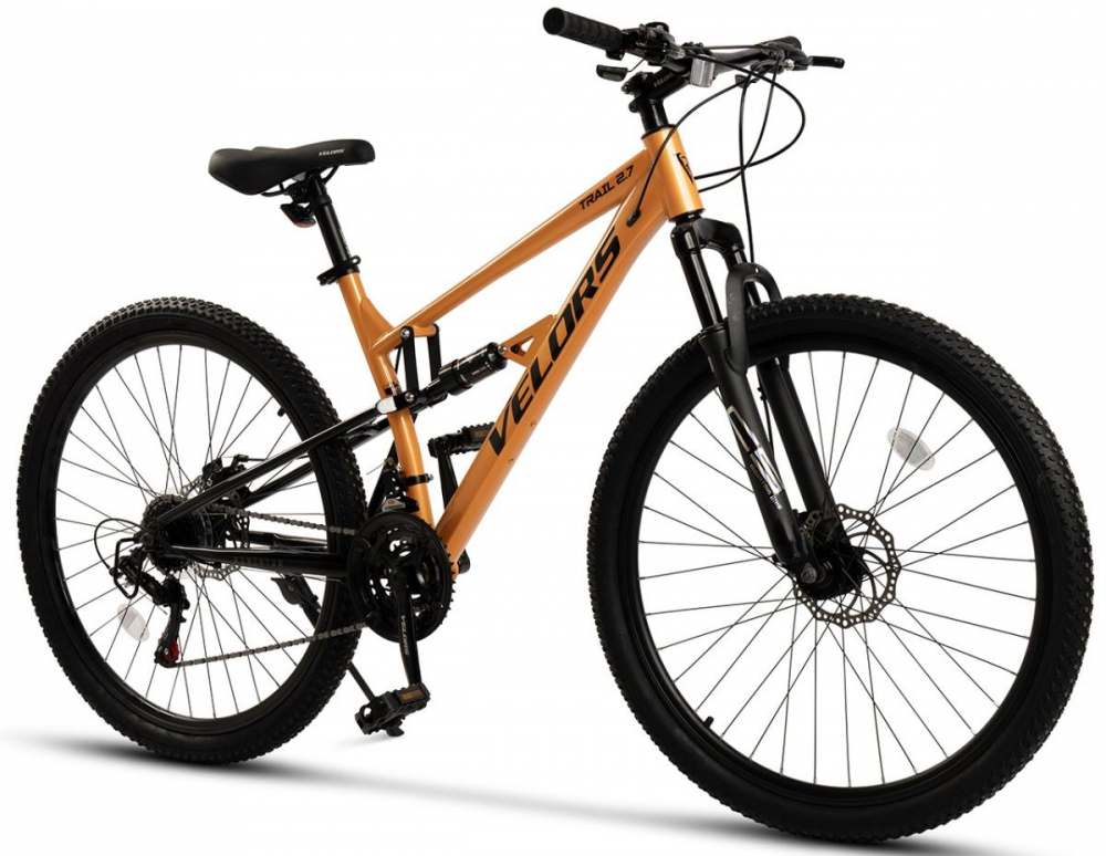 Bicicleta MTB-Full Suspension Velors Trail 2.7 V27271D Portocaliu/Negru, roti 27,5 inch, greutate suportata 120 Kg, inaltime utilizator 160-175 cm