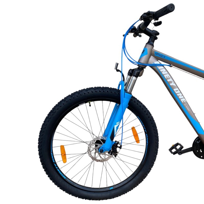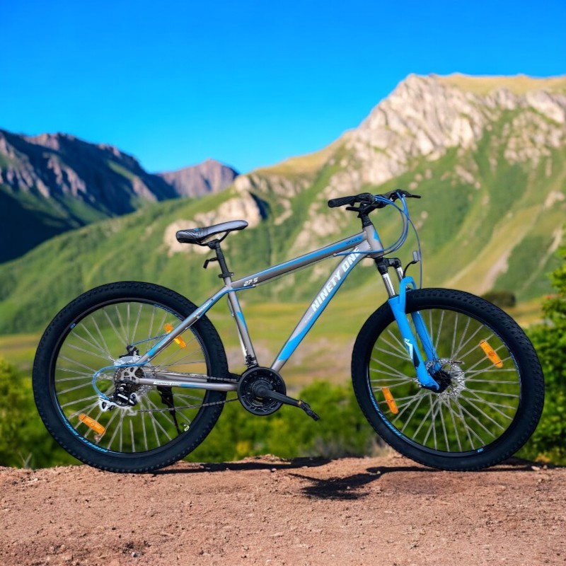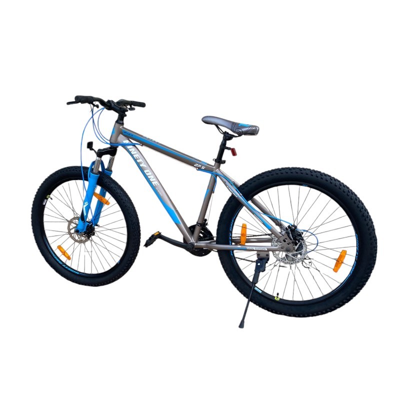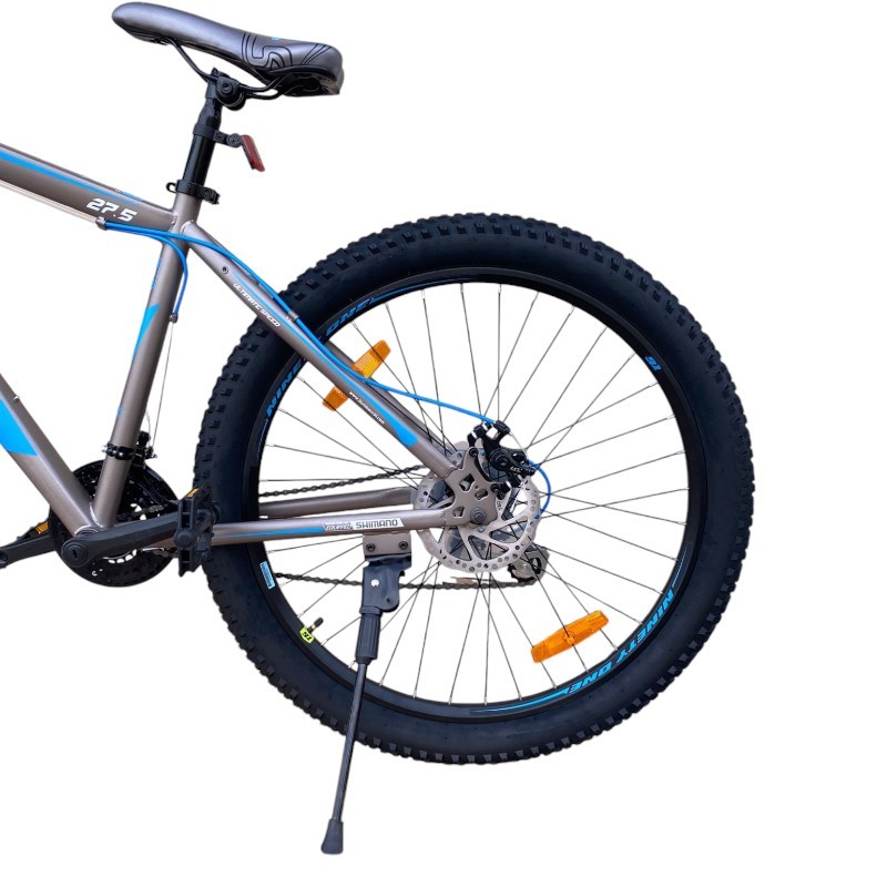 Bicicleta MTB Gri/Albastru roti 27.5 inch, 21 viteze, schimbator shimano, frane pe disc, suspensii fata