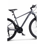Bicicleta MTB-HT Carpat Pro Teen C27472A Gri/Negru, roti 27 inch, cadru aluminiu, 21 viteze, echipare Shimano, frane disc mecanice, cabluri integrate