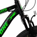 Bicicleta Panther este o bicicleta ATB (All Terrain Bike) cu roti de 29 inch, partenerul ideal pentru aventuri pe terenuri variate, combinand durabilitatea, performanta si un design modern. Cu un cadru solid din otel, aceasta bicicleta ofera o rezistenta excelenta, fiind potrivita pentru utilizare intensa pe drumuri accidentate, trasee montane sau asfalt. Dimensiunea generoasa a rotilor, de 29 inch, asigura o stabilitate superioara si o rulare lina, chiar si pe terenuri dificile. Designul sau negru-verde este modern si atragator, combinand eleganta cu un stil sportiv. Bicicleta este conceputa sa reziste provocarilor datorita materialelor de calitate si constructiei robuste. Ghidonul ergonomic contribuie la confortul in timpul pedalarii, iar cadrul solid ofera o pozitie stabila si sigura.
