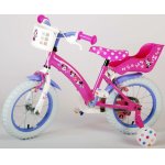 Bicicleta pentru copii E&L Minnie Mouse 14 inch Cutest Ever, frana de mana pe ambele roti, scaun si ghidon reglabil, suport pentru papusi, cosulet pe ghidon, roti gonflabile