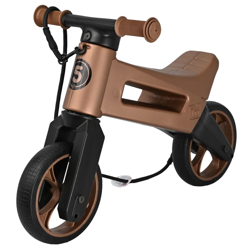 Bicicleta pentru copii Funny Wheels Rider SuperSport Copper 2 in 1 fara pedale, 18+ luni, pneuri si manere de cauciuc, 4 nivele de reglaj pe inaltime, greutate admisa 25 kg